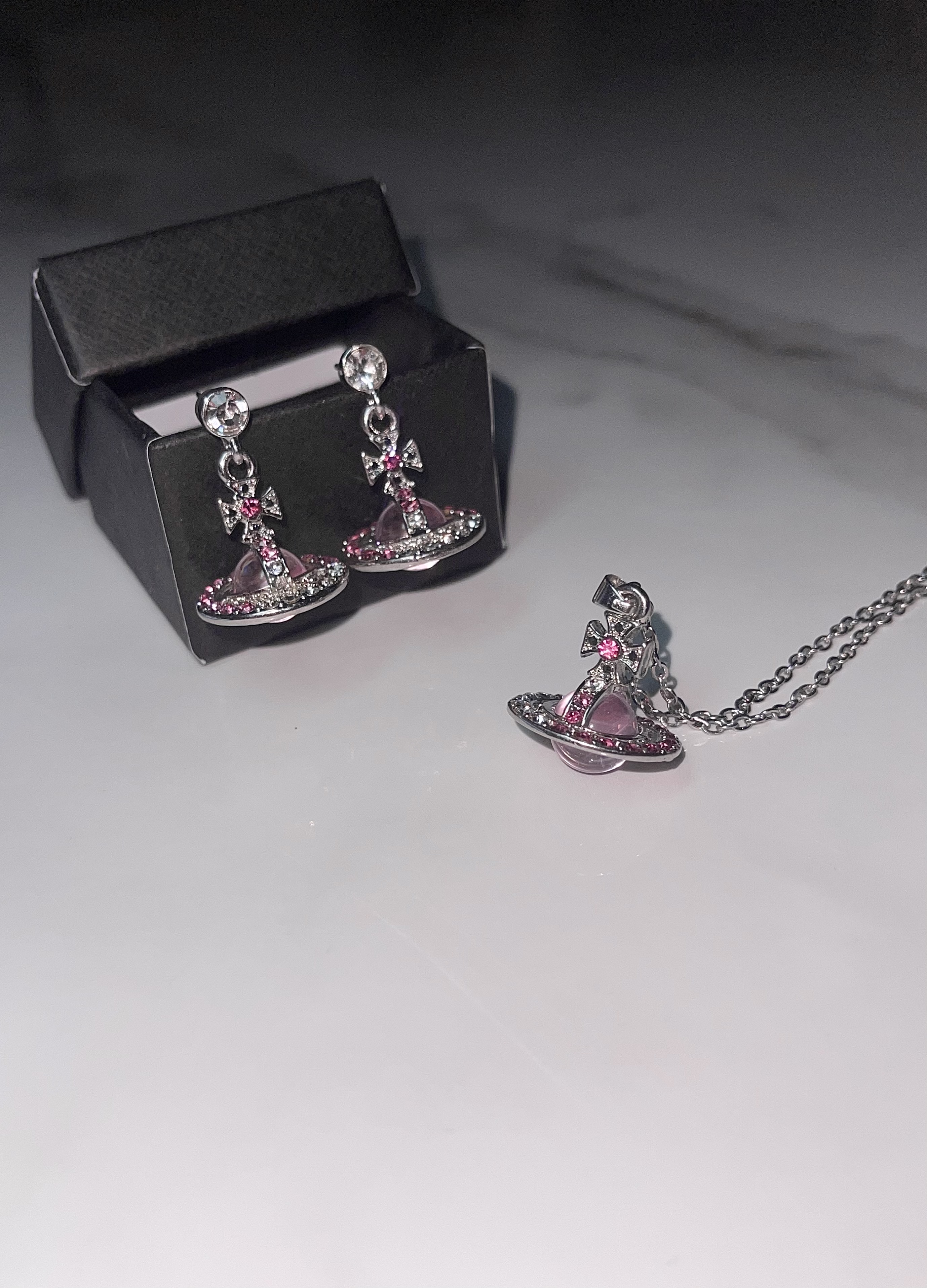 ناموجودگردنبند و گوشواره ویوین وست وود صورتی